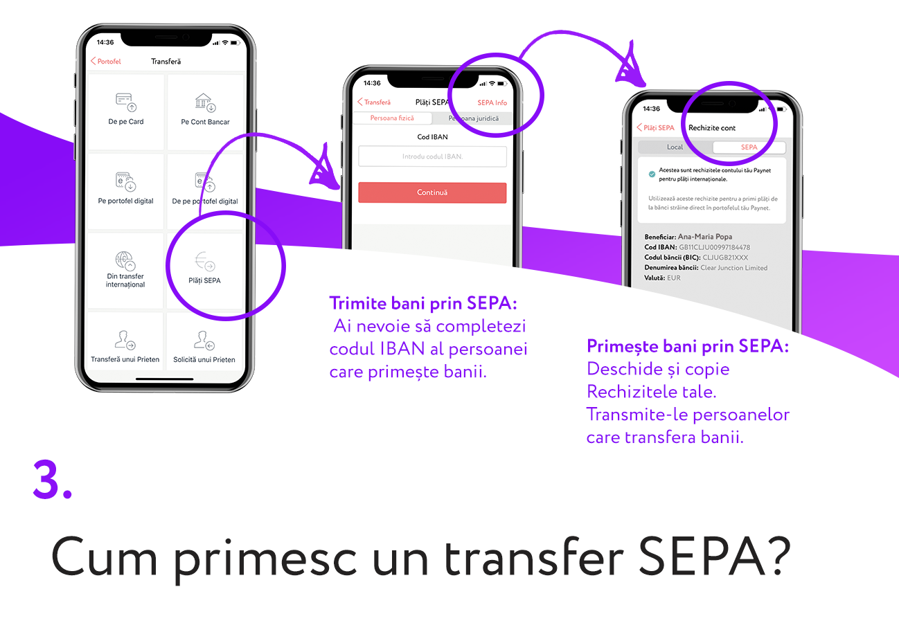 Cum primești bani din EU prin SEPA? Utilizatorii Paynet pot primi cu ușurință transferuri sau plăți SEPA din țările membre ale zonei Euro. Acum toate rechizitele necesare sunt disponibile direct în portofelul Paynet. Accesează Rechizitele din meniul profilului tău Paynet. Copie datele și trimite-le în mesaj persoanelor care trebuie să-ți transfere bani. Banii ajung în aceeași zi în contul tău Paynet.